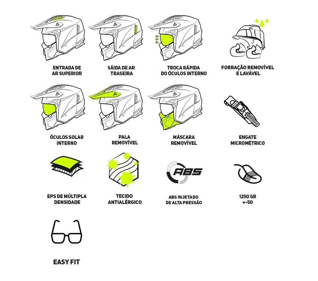 Pala e máscara removíveis, proporcionando 4 estilos em um único capacete