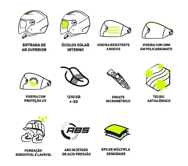 Casco em ABS de alta resistência para máxima proteção.